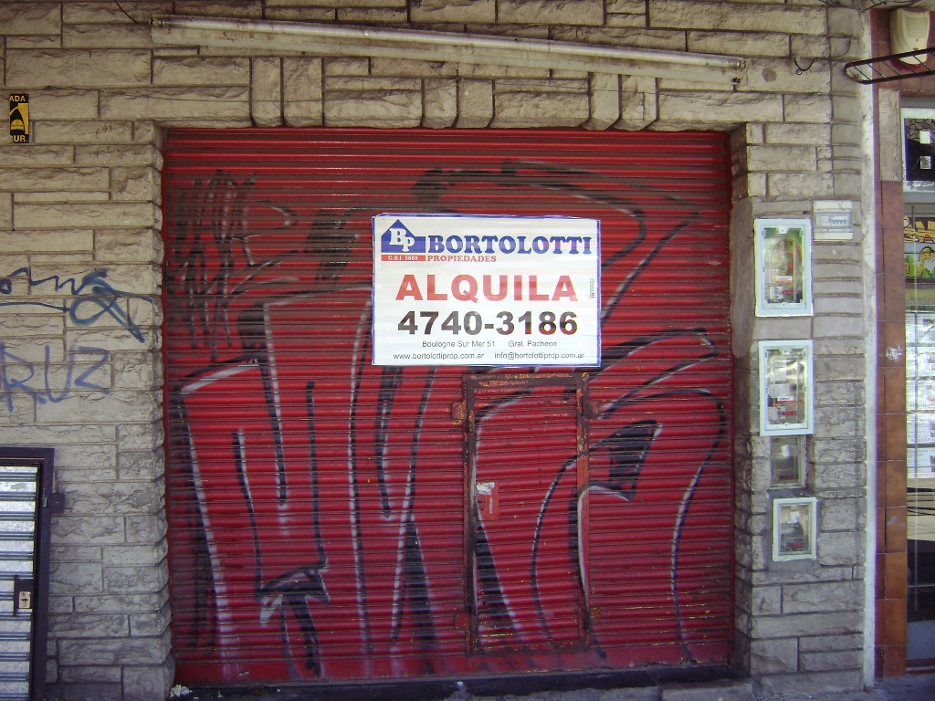 GENERAL PACHECO: Local Comercial de 4,20 x 10 + 5,30 x 9,40, con baño; cortina de enrollar ciega, reja. Sup. Cub.: 92 m2. Zonificación: Comercial (C4a). Av. Boulogne Sur Mer entre Av. H. Yrigoyen y Yapeyú.